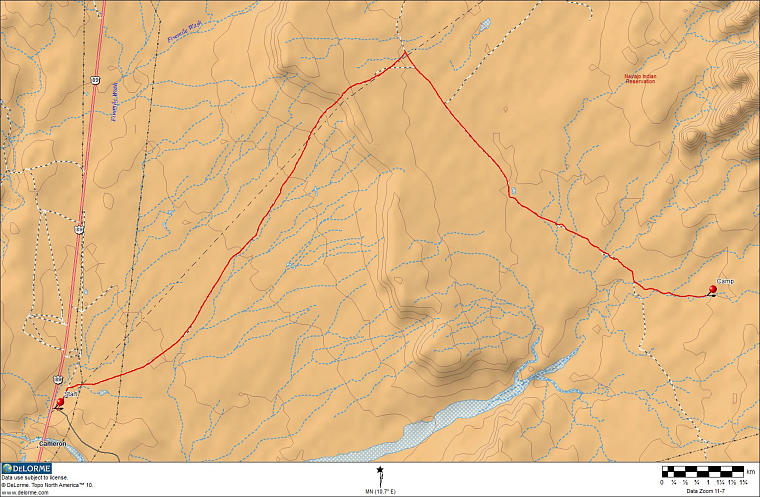 Die Dirt Road zu den Cliffs biegt etwa 200m nördlich der Brücke über den Little Colorado nach rechts (Osten) ab. Im