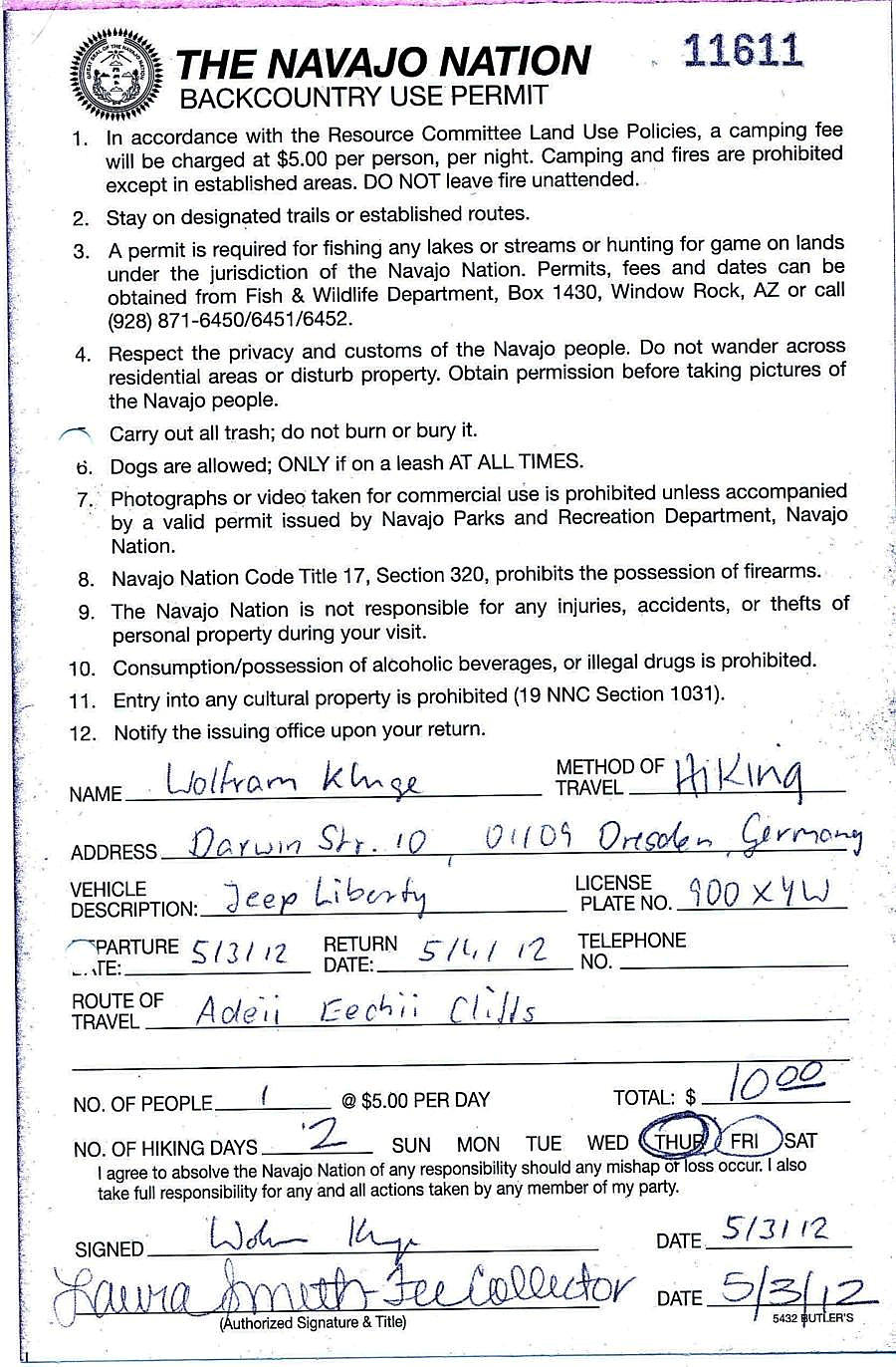 Ausfüllen gegeben. Da ich vor Ort übernachten wollte, habe ich ein Overnight Permit und das Back Country Permit für