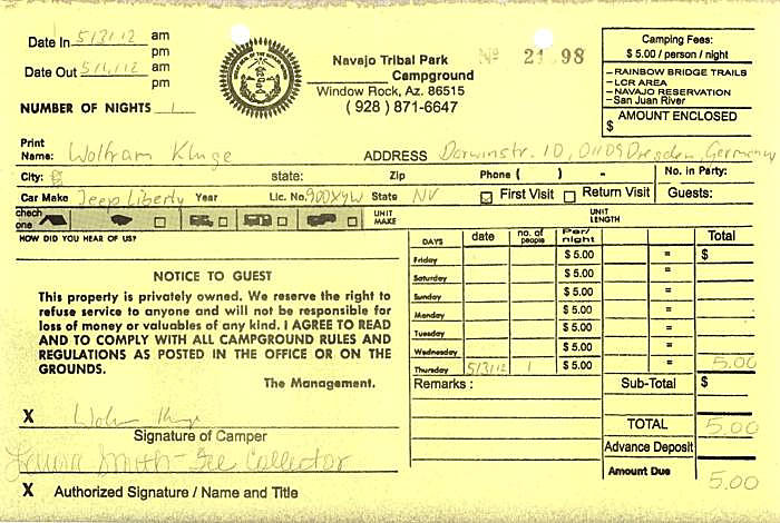 Das Permit habe ich mir am Vormittag im Cameron Visitor Center geholt. Das liegt südlich von Cameron, AZ, wo die I-64