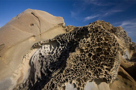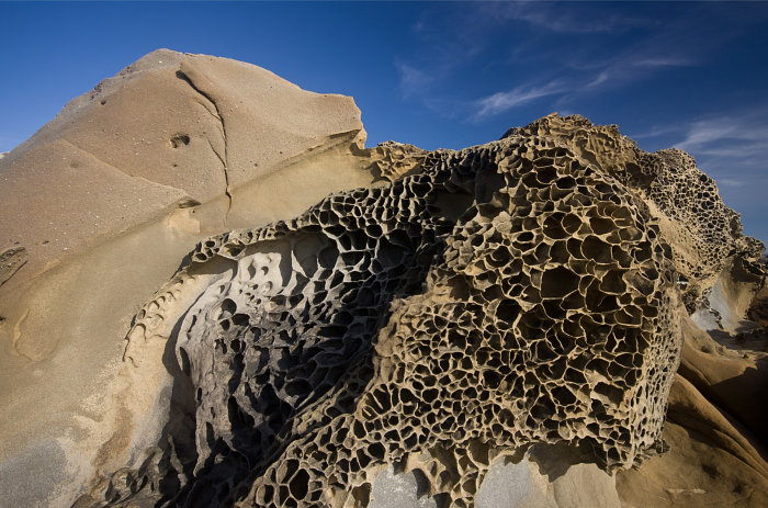 gelben Sandsteinfelsen im Küstenbereich, die mit