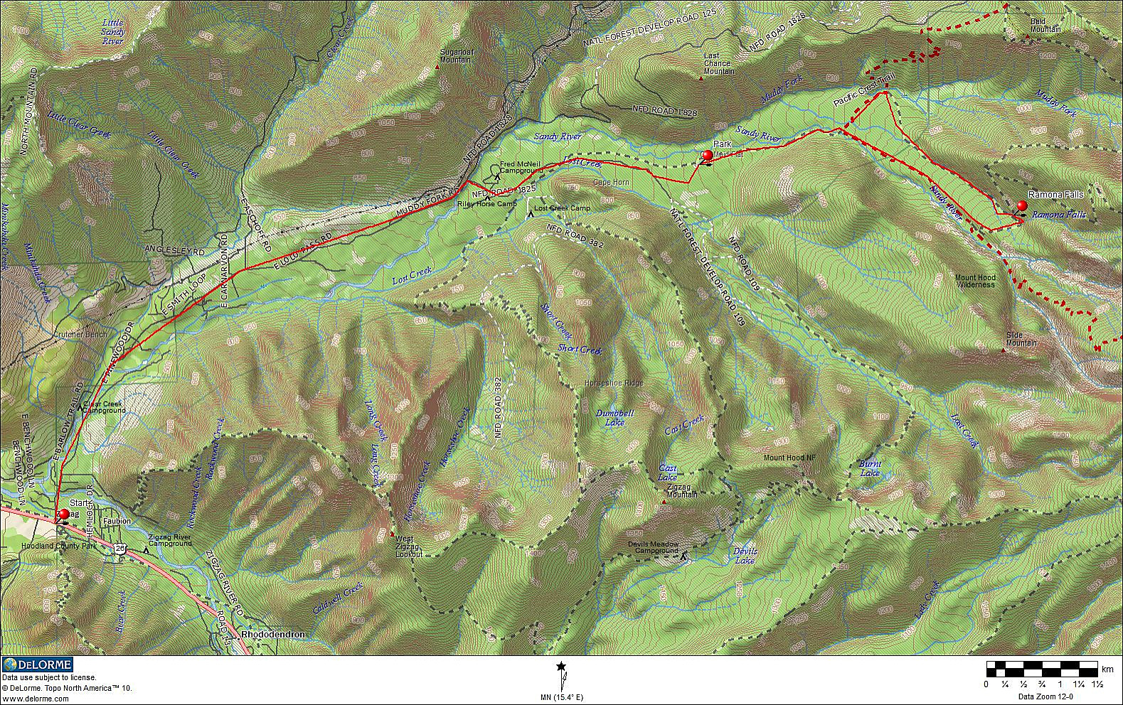 Anfahrt: In der Ortschaft Zigzag biegt man von der Road 26 nach Nordosten ab und folgt der immer schmaler und