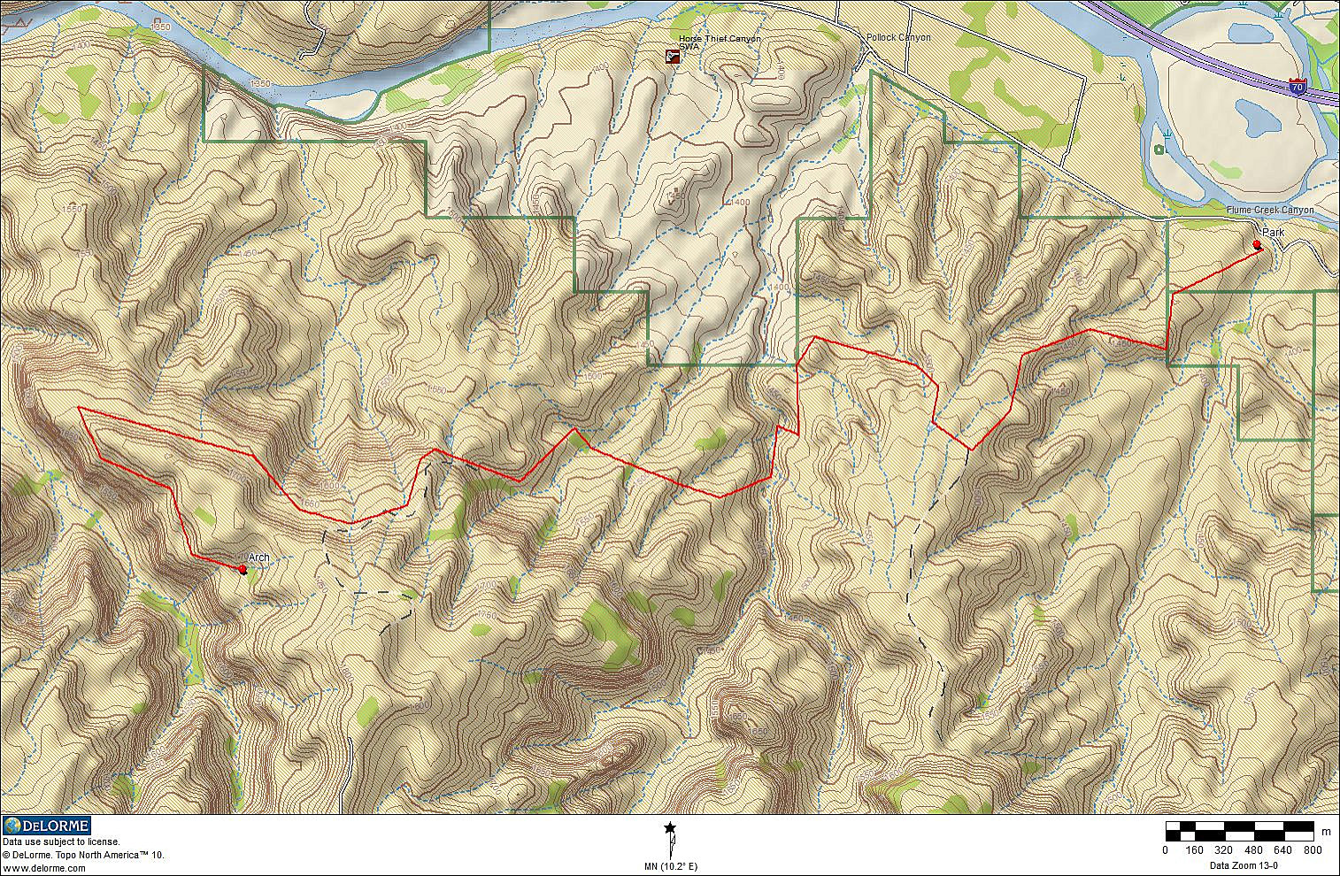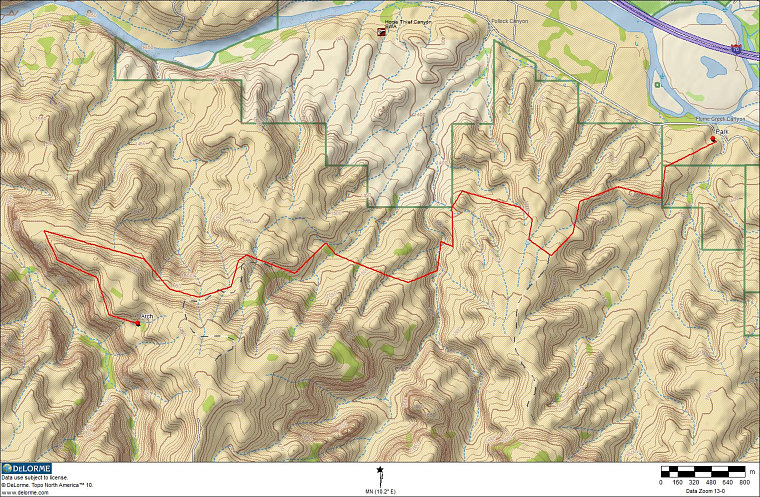 erscheint dann das erste mal der Trail R1, der zum Rattlesnake Canyon