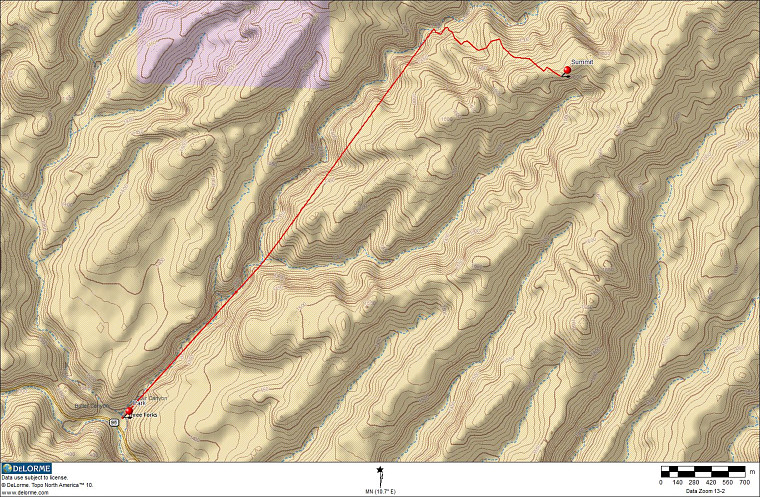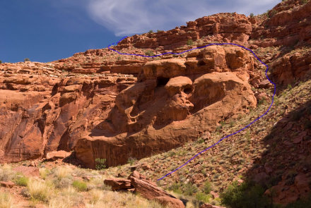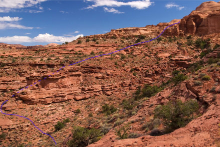 Das ist der Blick vom Felsdom nach Süden in den Nachbarcanyon. (Leider etwas grau das Bild, weil sich eine dicke Wolke