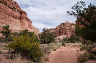 erreicht man den Fahrweg, auf dem die motorisierten Besucher zum Maze Overlook gelangen. Ein erstes Highlight ist der