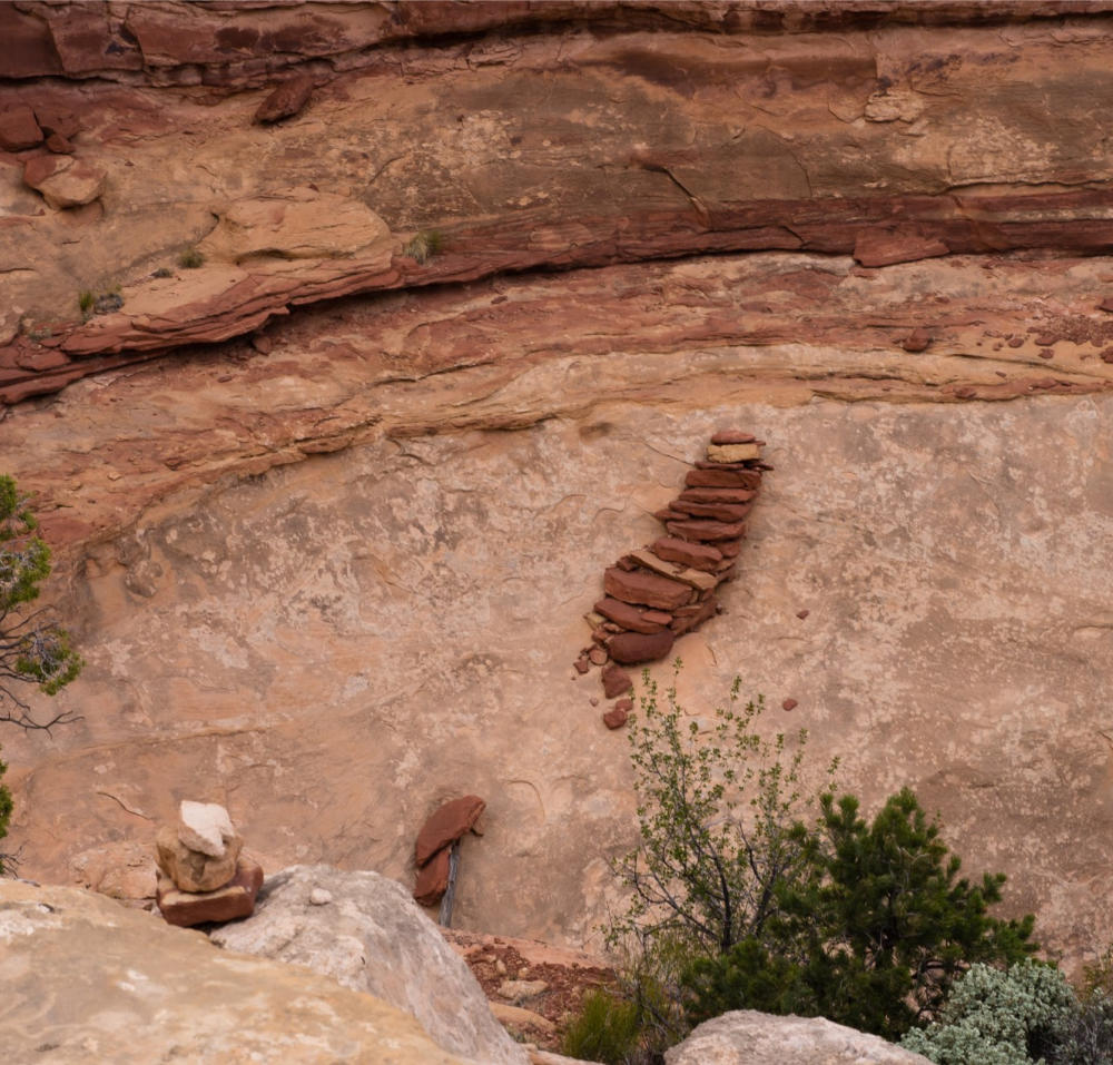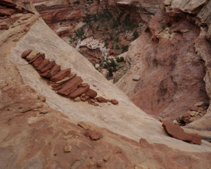 Und zum Schluss kommen die berühmten Moki Steps, abschüssige Tritte im steilen Fels.